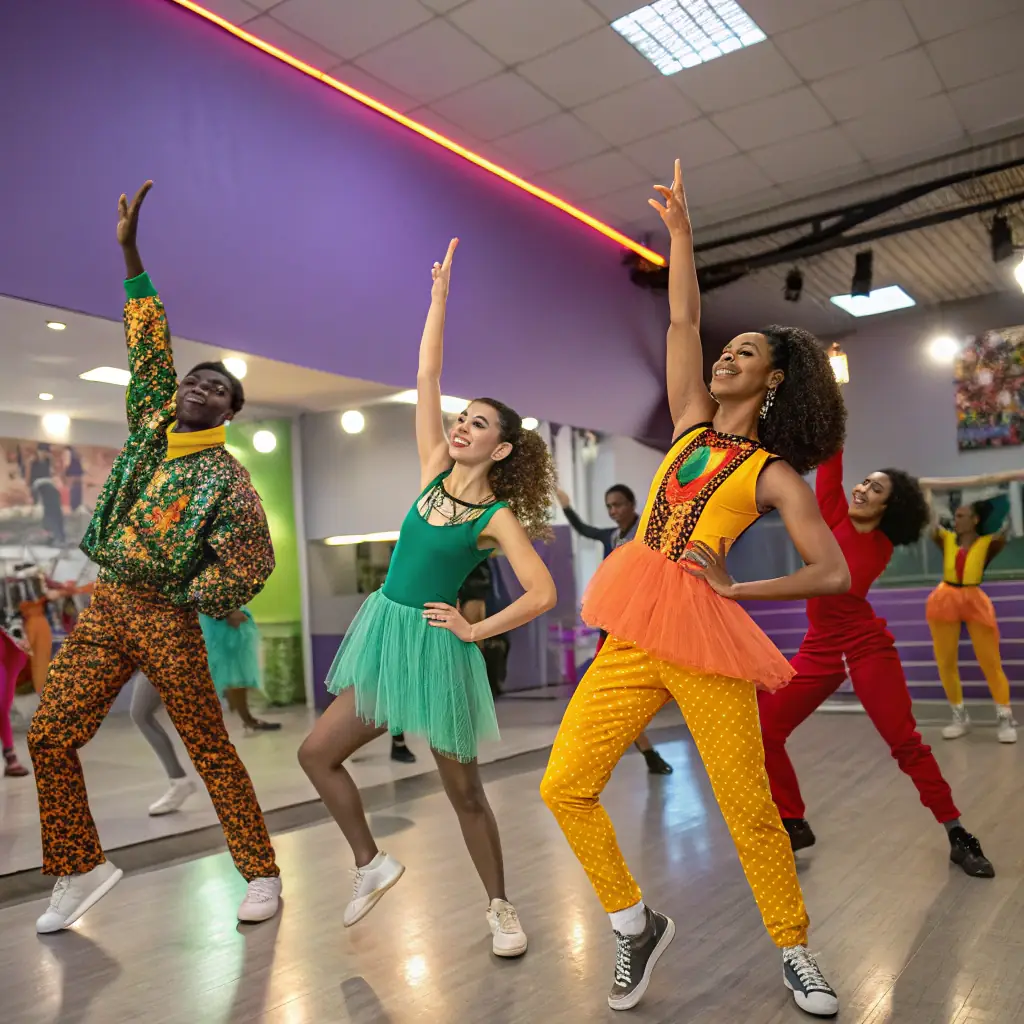 A dynamic dance workshop in progress, with participants learning new choreography and movement techniques under the guidance of a professional dance instructor.